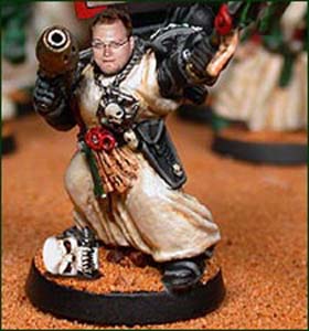 Bish is one of the four founding members of this organization. His skill in convertions and painting has thrilled me in the past few years. A superb modeller who has a brilliant 3rd company Dark Angel army. One of his most eye catching creations was the model of the Tower of Angels for the BFG game.