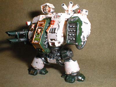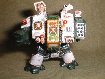 As such, when Brother Aegis broken body was recoverd by the apothecaries they inserted him into a mighty sarcophagus of a Dreadnought . The Dreadnought has been tailored to meet with Brother Aegis's special skills.