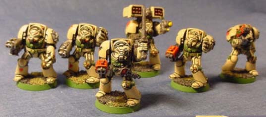Squads Alpha and Beta provide much of the required mobile fire support with their stormbolters and cyclone missile launcher. In addition they are a force to be reckoned with, when their power swords and powerfists go in to action in close combat.