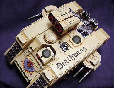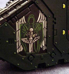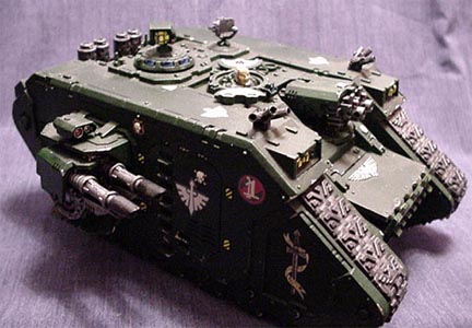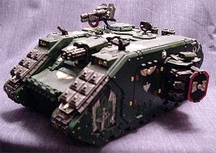 The true heroes of the battle at the Spaceport Winterlanding were the three landraiders and their holy machine spirits. The Landraider Mk III "Reliant" was Master Saraknyels personal transport and remains so, taking him and Squad Lucien in to battle when needed.