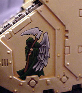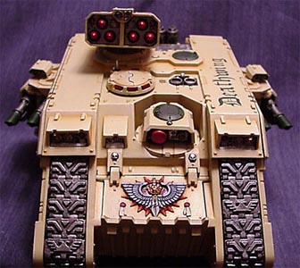 Landraider Crusader "Redemptor" had been used exclusively by Librarian Baraqiial and his squad as they charged in to battle ready to smite the enemy in close combat. The holy sigils on the body work mark it out as the vehicle of the most honoured librarian. |