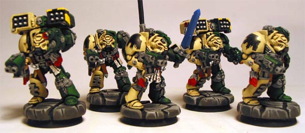 Veteran sergeant Omnicron leads the first of the tactical terminator squads. Despite being specialists in boarding actions they have a predilection for long range fire assaults and usually go to war armed with atleast two cyclone launchers.