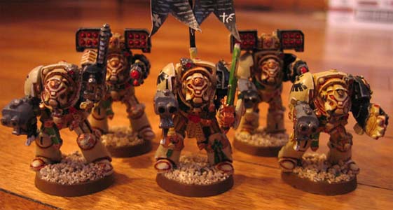 Heeding Librarian Melchior's advice, Master Hadrian chose to outfit his two ground squads with long-ranged weaponry to complement and support the advance of the 'Angel's Fury'. To this end, each squad is armed with two cyclone missile launchers. |