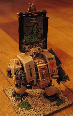 Venerable Brethren Varrius and Taarion were bitter rivals in their previous lives as Deathwing troops, so it is an ironic twist of fate that they both be incarcerated in Dreadnoughts and made to serve in the same strike force. Varrius, a previous heavy weapons terminator, is outfitted with a Twin-linked lascannon and missile launcher to match his aptitudefor such weapons. Taarion, on the other hand, revels in close-range combat with an assault cannon and power fist. |