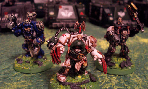 Master Drago and Librarian Septimus On occassion, as leader of the combined Battle Force, Master Drago will don his ornate Terminator Armor to lead a Deathwing only detachment into combat. In this viewpict it appears the strength and wisdom of Librarian Septimus is required for the battle ahead.A potent subsection of this force was led by Librarian Septimus. Clad in tactical dreadnought armour he led a Deathwing contingent and during the most crucial stage of the assault he was joined by non other than Master Drago himself. |