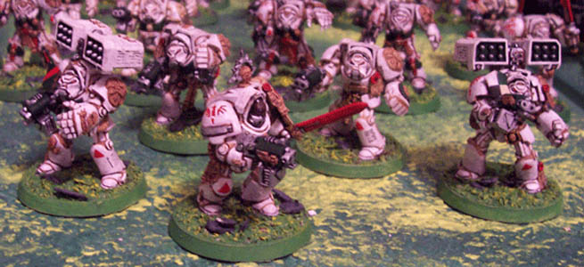 Coming in to their own, in the limited confines of the ruins of the city, the small squads of deep striking terminators wrought havoc amongst the enemy defences. Causing an effect far in excess of their own numbers these squads spread fear nd confusionamongst the rear echelons of the enemy lines. |