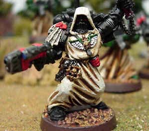 Interrogator Chaplain Prometheus is currently the commanding officer of the Army of Darkness detachment. Prometheus is a veteran officer with over 200 years of service to Emperor and Primarch. He is a member of the Inner Circle and as such, privy to the darkest secrets of the Dark Angels Chapter. |