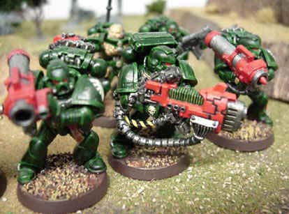 Lead by Veteran Sergeant Brocius, the Army of Darkness devastator squad prefers to pound the enemy from beyond range. Lead by Brocius, they are dead-hard and are trained to ignore incoming fire. The combined effect of the Plasma cannons and versatile missile launchers is so deadly that most enemy assaults are broken up before they reach the Dark Angel lines, leaving them vulnerable for a decisive counter attack. |