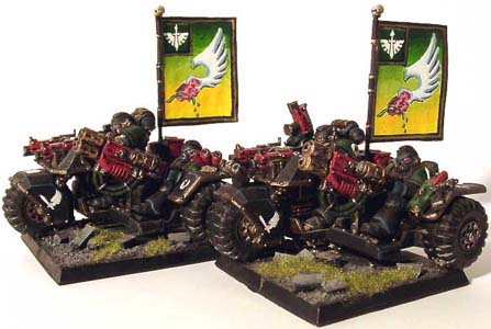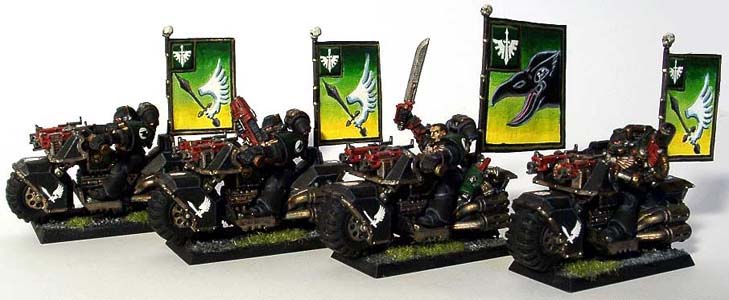 Battle field reconnaissance is provided by an experienced scout squad supported by elements of the ravenwing on bikes, attack bikes and land speeders for rapid response and mobile fire support. A venerable dreadnought provides much battle experience and further mobile firepower. |