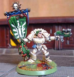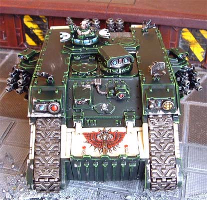 Supporting the command squad and taking it upon himself as his honourable duty to protect the supremem grandmaster, the venerable Marziel insisted on being attached to this strike force. Armed with deadly twin linked lascannons and able to fire a barrage of missiles, he has been the bane of enemy armour. |