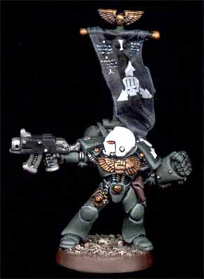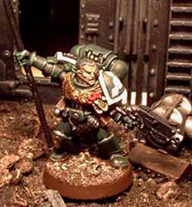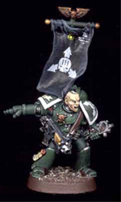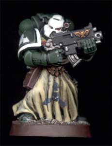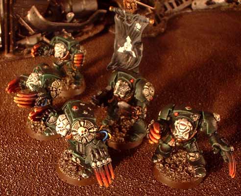 The Death Angels are a secretive successor chapter of the Dark Angels. Little is known in Imperial records of their history, but their immaculate appearance on the battlefield and their combat prowess are testimony to their dedication to the Emperor. Their appearances seem to occur mostly in the Southern fringes of the galaxy. Depicted here are rare images of one of their command squads taken by imperial pict-robots on the worlds of Taradan IV.