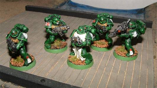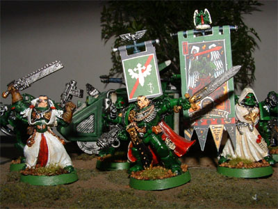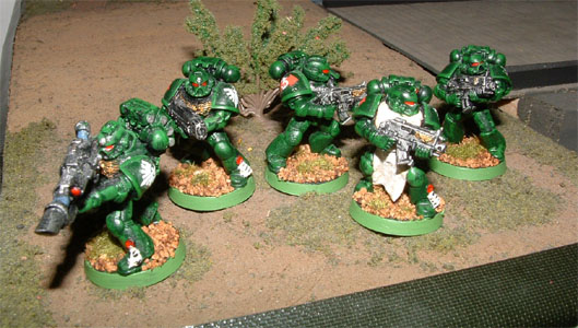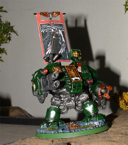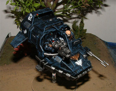 TACTICAL SQUADS 2 & 3: The tactical squads are the core of the Strike Force. They are very versatile units, capable of destroying tanks, infantry and multi wound creatures alike. DREADNOUGHT AZMAVETH: The mighty Dreadnought Azmaveth has been in many bettles, even before Master Eleazar decided to recruit the Dreadnought in his army. Azmaveth even saved the day for the Battle Company of Epistolary Abednego, when he destroyed a Iron Warrior Basilisk with a single shot! The Ravenwing Land Speeder is excellent to hunt down hidden tanks such as Iron warrior Vindicators and Basilisks, for its speed and multi-melta can be a great tactical advantage. Master eleazar is very enthousiastic about them that he considers using two more of these speeders to upgrade his Strike Force. |