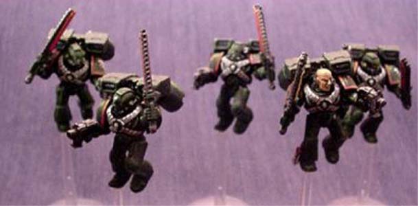 jumping into action during a training mission. They have spear headed jump assaults to pave the wave for the Squad Primus on many occasions. Armed with the light bolt pistols and chain swords, these men are experts at the lightning assault. |