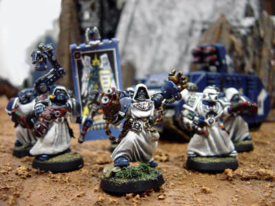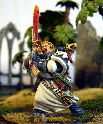Amongst Legio Divina the revered brothers from the Throne circle wear terminator armours. In their ranks Sachiel's name is renowed for his skill in markmanship ability and he wears proudly the golden bullet honour over the vest that signs his belonging to the Inner circle. During Ignis crusade he lead a ten men squad of powerful brother with heavy weaponry to deep strike the ranks behind the innumerable chaos cultists and to seek and destroy the demonic menace.