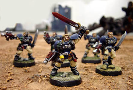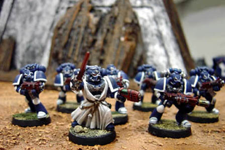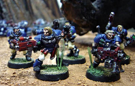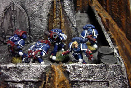 The scouts lead by sergeant Kassiel are often deployed to grant brother Sachiel terminators a safe landing point from the warp deeps. For this reason they bring to battle a long range weapon choice to clear the area from alien scum. Kassiel once had his