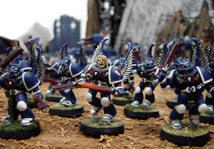 Sergeant Elemiah and his shining wings squad joined the crusade from the first circle. Is said he usually fought alongside Grand Master Michael in his honour guard against cunning eldar troops from the Alaitoc Craftworld. With his sacred fury he brings the blade from the sky upon Emperor's enemies.