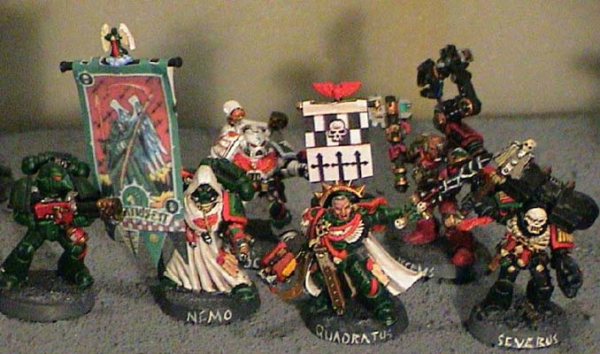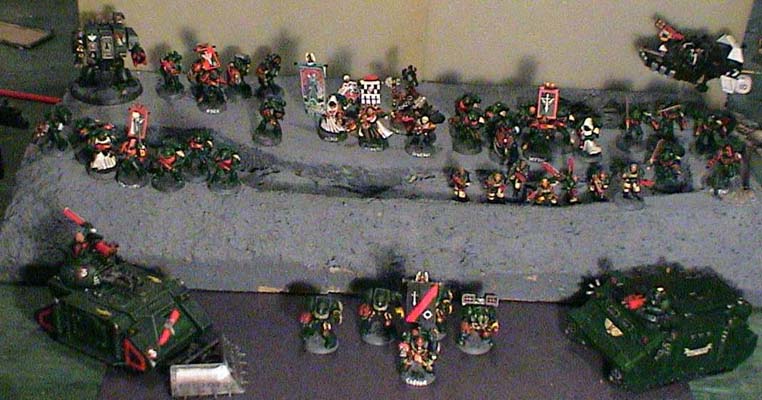 The 3rd Company of the Dark Angels Chapter, charged with the objective of quelling alien insurgencies into Imperial Space, has dispatched small units of Space Marines known as Advanced Assault Forces. These highly mobile A.A.F.'s are capable of deploying rapidly and dealing with a variety of situations. The Thirteenth was the last A.A.F. deployed and benefited from centuries of combat knowledge. The 13th has a compliment of Tactical Marines, as well as limited squads of Devastators and Assault Marines. They are even equipped with ten sacred suits of Terminator Armor. Realizing that earlier A.A.F's suffered from a lack of vehicle support, the 13th was given a motor pool that boasted several rhinos, a predator, a squad of land speeders and attack bikes. In short the 13th was equipped to handle any situation, from rebellious feral worlds to deep striking into orc infested bunkers.