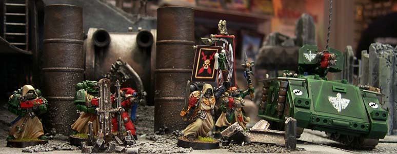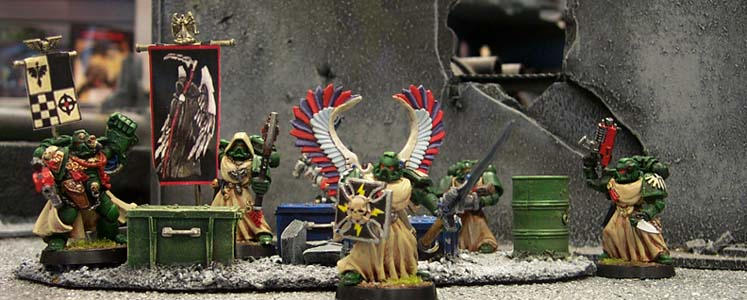 Vindication of Faith, Octavius and a small tactical command probe deep within the enemy lines to find and capture the Fallen. Brother Lucias, Techmarine of the 5th company has been maintaining the sacred war machines for two and a half centuries. Lucias' reputation for fixing field damage is legendary within the Dark angels. Armed with a bolt pistol, power axe and a servo arm Lucias is a formidable foe on the battlefield. Veteran Sergeant Tobias and the first tactical squad (Tempest) are the personal bodyguards of Interrogator-Chaplain Octavius. This is the most distinguished post within the 5th company's ranks. Only the most loyal space marines are asked to join the 1st tactical squad. These battle brothers will be the next group to be inducted into the Deathwing.
