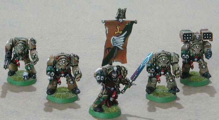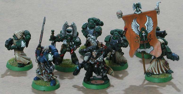 Interoggator Chaplain Uzziel stared around him. The room was dark and dank. Thick candles burned slowly. Hooded statues gazed at him, great heroes from ages long forgotten. Uzziel reckognized a few, from long lost stories. The statues looked imposing, as if they were judging him too. The chapter symbol stood in between each statue, the chapter for which he had lost so many comrades. The rock was a dark and forbidding place Uzziel knew, and there were parts of it he has never visited before, nor did he want to. And this was one of these places. |