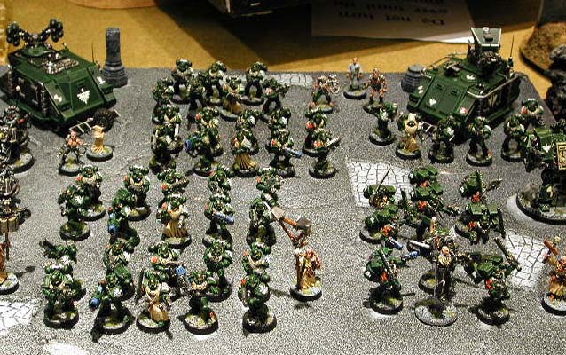 Just then, a voice erupted from the voxcaster. "This is Colonel Fringer of the Imperial Guard 151st legion. We welcome the Dark Angels Battle Barge Persecutus. Chaplain Ashriel, your help couldn't be more timely. We're about to be overrun down here, and we're critically low on supplies. When will your force be ready?" All eyes on the bridge turned to Ashriel.