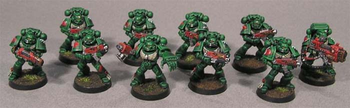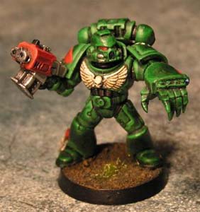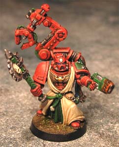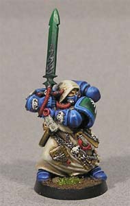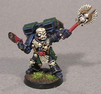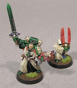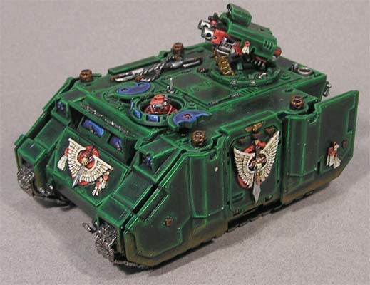 Similar to the closeness between the supreme grandmaster of the Dark Angels and his chief librarian, Gannius had a firm bond with Lexicanium Vastus. Both loved the sounds of battle and always led from the fore, most often seen armed with jump packs and leaping in to the thick of fighting. When leading his command squad in to bttle however, Gannius prefered the simplicity of his command rhino. |