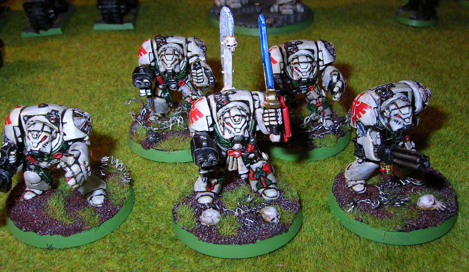 Second Tactical Squad has long been the best performing unit attached to "Strike Force Vendetta". Veteran Sergeant Lucien's inspirational leadership has made the squad fight with an almost unparalleled fury and devotion. Their rhino, whose machine-spirit is named "Gladius", has served them well, and regularly transports them into the thick of battle. Recently, during the Carthusia Campaign, the squad was instrumental in securing victory from the Traitor Guards, after Interrogator-Chaplain Boreaus had been incapacitated. Battle-Brother Nithin, who wields the flamer, has cleansed many traitorous Guardsmen and foul aliens in its purifying fire. |