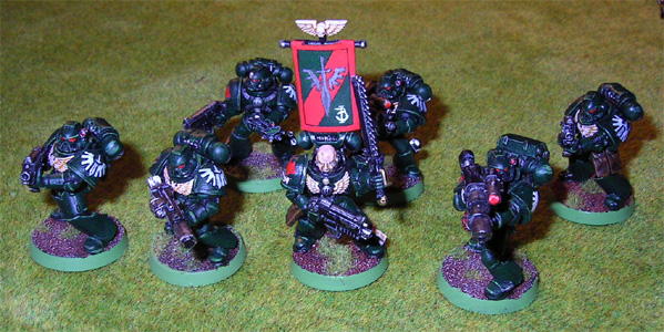 Third Squad is another unit filled with extremely dedicated marines, and led by their Sergeant, Cadfael, they have held the line at times of desperate crisis and need. Their Lascannon and meltagun has reaped a great harvest amongst the enemy's armoured units, and they have become feared throughout the Damocles Gulf for their unerring accuracy |