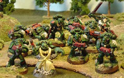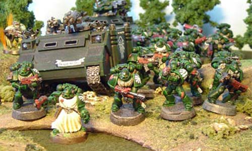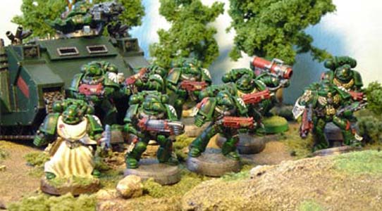 Squad Arbatel is the assault oriented, first tactical squad of the 3rd company equipped with flamer and missile launcher. Brother sergeant Arbatel carries a power fist. A rhino as the squad's dedicated transport provides the much needed maneuverability of this highly flexible squad. The squad deals well with most kinds of opponents, but the effect squad Arbatel has on the ranger forces of craft world Alaitoc can be deemed no less than devastating.