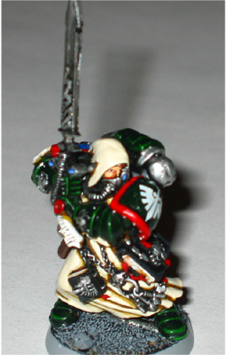 Current Position: Epistolary temporarily attached to the 3rd Company as they crusade in the Segmentum Tempestus. He uses his powers to aid his brothers in ranged battle, as well as leading them valiantly. Against the enemies of the Chapter he summons a fearsome spectral Angel, a gaunt and terrible avatar of doom for those that would oppose the Sons of the Lion.