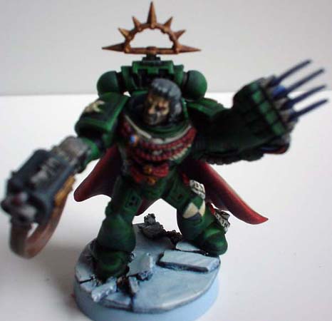 - While still in the 10th Company, he killed an Ork Waaagh-Boss with his sniper rifle and saved the rest of his squad through quick thinking. - In his 4th year as a battle brother he was one of the few whose squad was successful against a Tau detachment. - He was awarded command of his squad, when his sergeant fell two years later in a fight against chaos forces. Duma took up the power weapon of his dead sergeant and killed the chaos champion responsible for this death. - He was awarded veteran status after only 20 years of duty, fighting in the first squad of the 4th company henceforth. - Duma lost his left eye in duty against Tyranids boarding an imperial retribution class battle ship. Since it was only a minor injury he kept on fighting, recovered the company banner and for this was awarded the honour of bearing it into battle. His eye was later replaced by a bionic version. The vessel was saved. - He bore the banner for further 32 years, when the former captain of the 4th company fell to artillery fire of chaos forces. Rallying the troops around the banner, Duma managed to turn a near loss into a victory and was inducted into the Deathwing after being found worthy. He was subsequently promoted to Master of the 4th company. - Since taking his new position, Duma only had a few minor losses, but a noteworthy tally of victories. He believes in leading from the front and by example and is thus revered by his subordinates. - Currently, Duma is leading an attack against the world of Kashya, were he was wounded after finding out about one or more Fallen on the world. While recovering from wounds, Duma sustained from a Dark Eldar lord, Sammael took command over Dumas small detachment bringing a small Ravenwing force along to look for hints of the Fallen.