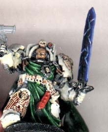 Here's an example of a power sword on my terminator Captain. To learn to paint the captain, visit the painting the Deathwing model, which is where i learned. And the cape was made like the Master of the Deathwing one also shown on this site. Good Luck! |