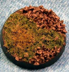 Stage 4: This is the first of several dry brush coats over the gravel. This is done with Ral Partha Flesh Tone #10 (GW Scorched Brown). |