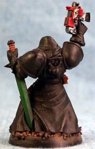 Step 23 - The power sword gets a first coat of GW Dark Angel Green |