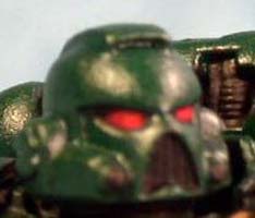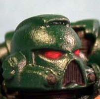 Blazing Orange is then dotted into the front corner of the eye. This will give the eye visor a gem like look on the table top. |