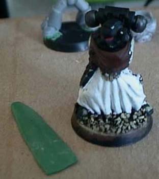 -Sculpting tool (GW's is perfect). -Greenstuff. -Plastic Space Marine. -Super glue. -In this case...A Dark Angel Robed Veteran. |