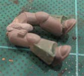 Step 3 - This is the beginning of the bulking out and squaring up of the Techmarines legs. They are just the vanilla bike rider legs but I will sculpt on the layered armour of the new Techmarines on their legs. |
