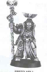The ezekiel miniature stood out as being a pretty good Ec on its own. It was robed, hooded and was already wielding a massive sword in a two handed fashion. I could have gone with simply removing the librarian icons and attachments but I wanted mine to be quite unique, so gathered my courage and the jewellers saw and commenced my journey in to conversion nirvana. I also for the first time, decided to scan the miature to record it's progress. |