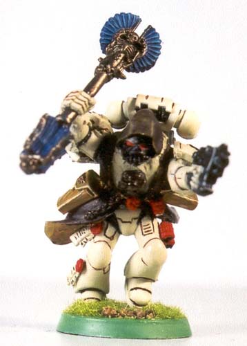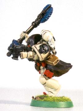 Cyphers cloak and bolt pistol holsters had a very dynamic image to them, as if they were being thrown about as the chaplain charged. I was glad I had swapped to the Cypher model for this project. Finally the detailing was added in way of the litanies on the purity seals and final touch ups. Looking back it is probably one of my better conversions. While this is nowhere near the high standards displayed by many in the hobby, it just proves that anyone can create a reasonably effective conversion, even without using the much vaunted green stuff putty. |