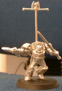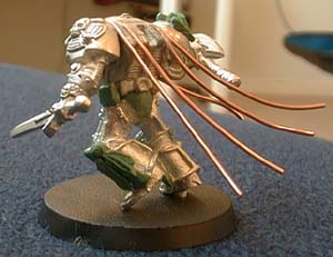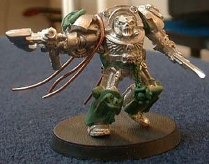 Here we go again, a new conversion idea and no money to spend! The idea came to me as I was looking at my terminators and noticed that the Terminator Chaplain's upper body is really cool, especially the helmet, and Logan Grimnar's legs are the most dynamic in the Terminator range of miniatures. The conversion in itself is very straightforward. Simply cut the two miniatures in half and pin them together.