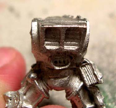 You need to make this space wide and deep enough to fit a space marine head. It is a good thing to have one handy to test out the fit. |