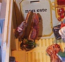Step 3: With the Helmet, backpack and sword, it was basically the damage I'd done cutting it up that lead to their positioning, The helmet is damaged on the right side so I positioned it inside so that part couldn't be seen, then the sword, I ground off the hand and made two GS 'strap' to cover it and then these would be used to attach it to the roof. I followed that with another harness for the backpack for fitting to the wall. I still had the combi-weapon left, so I filed off |