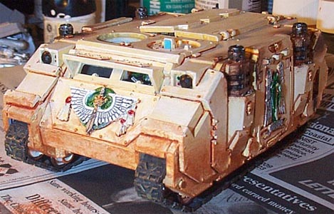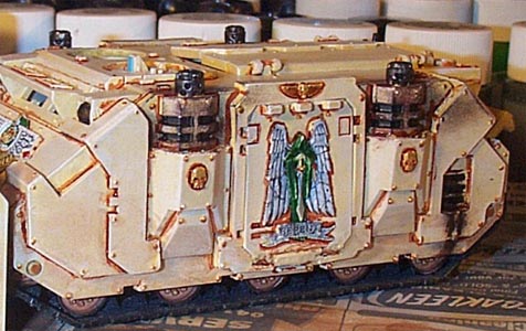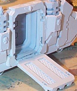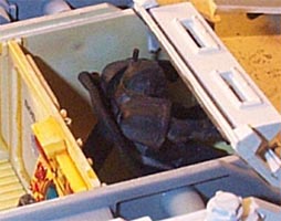 Step 6: I painted the driver first, as he would be the least seen model, and was a warm-up for the gunner and Azrael. I then fitted him to his chair and then with him in place finished painting the interior of the driver's cabin. The paint scheme in the cabin is very stark, so that it would catch the eye. I thought that if I was too subtle it would be lost. |