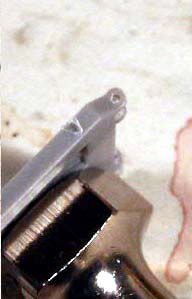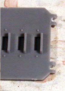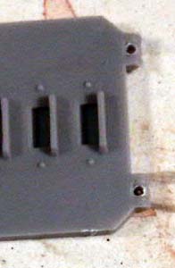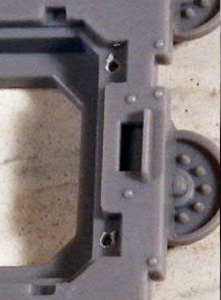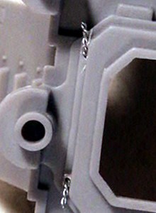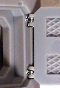 Because there is no glue involved and there is flexibility in the wire adjusting the doors motion to perfection isn't terribly hard. You'll probably need to remove a little material from here the bottom of the door and the frame meet to allow for the door to move all the way down to touch the ground. This is where the glue comes in, if you feel the hinges need a little more stability just add a drop of glue between the plastic and the bent wire on the interior of the rhino wall.