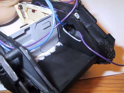 Note that I have drilled two small holes (about 2 - 2.5mm in diameter) on the right-hand side track, and led the wires through there. Once you are happy with the fit of the LED's, give them a drop of superglue on the back, inside the |