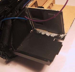 Now, as you might have noticed, in order to make this thing work, you need to cut a hole in the floor-section of the Rhino. Here we go. Now, as you will notice in this (very grainy, sorry) picture. |