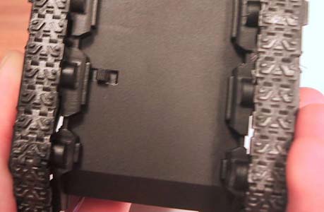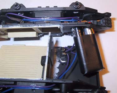 lever, and the plastic to the left. Increase this space by cutting away even more material (1 1.5mm will do). Viola, now it's easier again. Once you're happy with the position of the switch, glue it using the hot-glue-gun, from the top. Don't try using superglue! It will mess up the switch! |