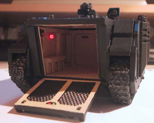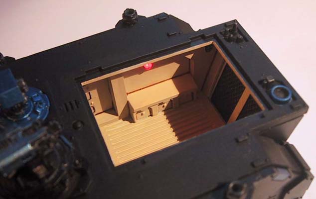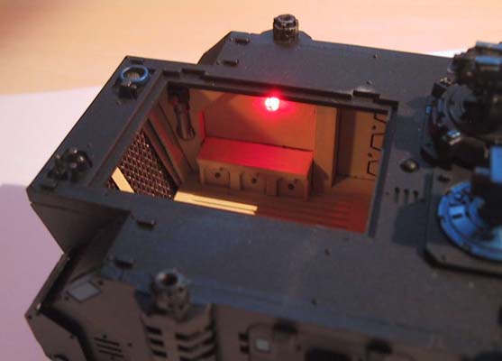 Now go out there and impress your friends / girlfriend. Riiight. And from an earlier mod, a ForgeWorld Damocles Command & Control Vehicle. Note that the LED is much brighter here, this is because I accidentally used the wrong resistor values on doing this guide.