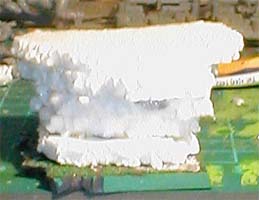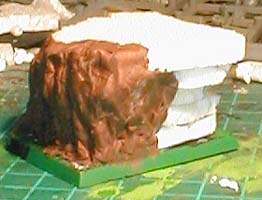 Stage 1: Preparing the Base: The base was created by initially layering polystyrene cut to the appropriate size. (Stage 1A) Then putty was added to build up the rocky texture. (Stage 1B) I used Selley's Kneadit (the copper coloured one) which is a two part epoxy putty that is brilliant for this sort of work. It sets in about 5 minutes. You can work it easily with a wet tool, or carve and sand it when set. And finally the base was completely fully covered. (Stage 1C) |