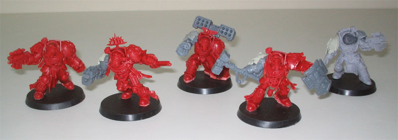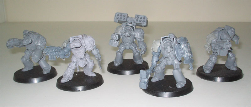 This phase consisted of all the five squads being put together. I essentially hacked, ripped, swapped and glued to my hearts content. Only the two cyclone launchers were not glued on to allow painting. The rest I will paint as the models are. below are the completed squads.