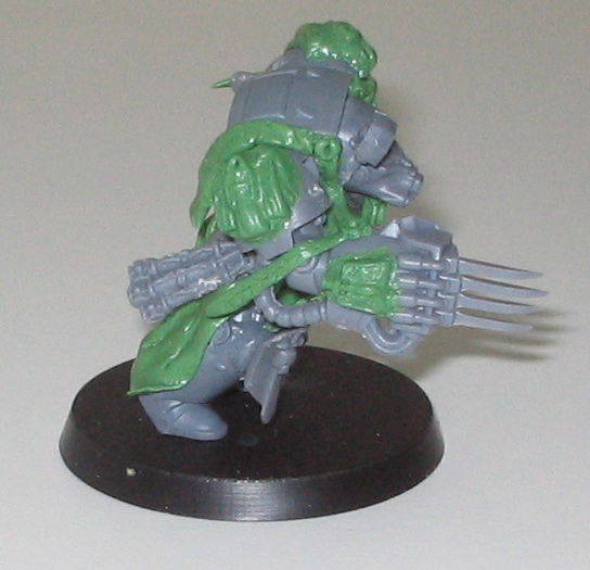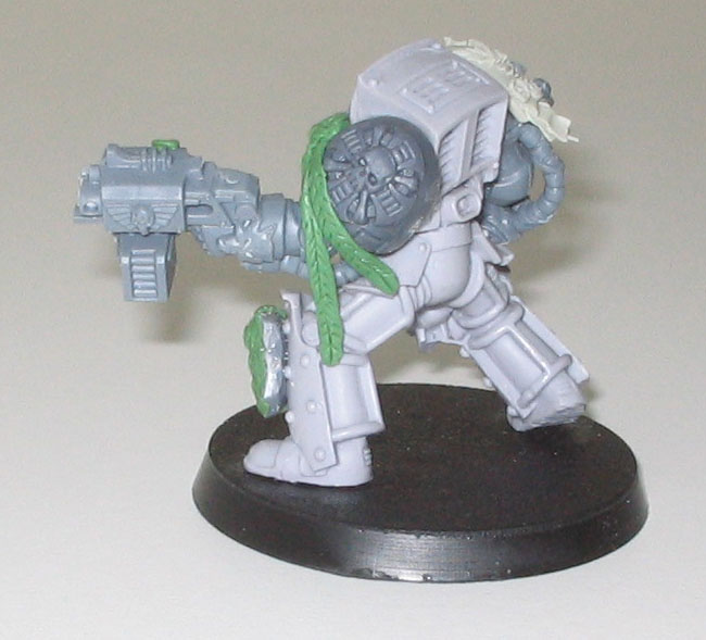 I managed to sculpt for the very first time an entire robe along with a large amount of feathers, purity seals, messages etc. I think I have managed to capture the assaulting terminators menacing body language.